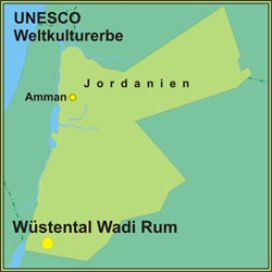 Das bekannte Wüstengebiet Wadi Rum ist Jordaniens viertes Weltkulturerbe. Die UNESCO verlieh der Region am 25. Juli diesen Jahres (2011) den Status eines Naturdenkmals. Die Wüste Wadi Rum ist eine von acht Naturschutzgebieten des haschemitischen Königreichs Jordaniens.